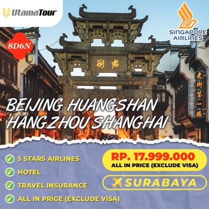 Beijing Suzhou Hangzhou Shanghai 8D Start Surabaya Oktober 2024