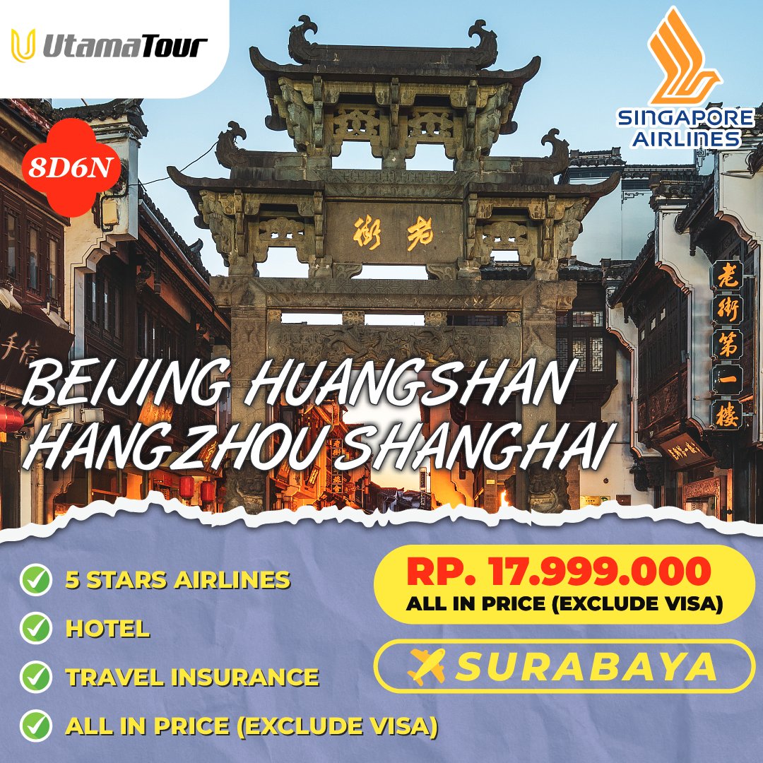 Beijing Huangshan Hangzhou Shanghai 8D Start Surabaya November 2024