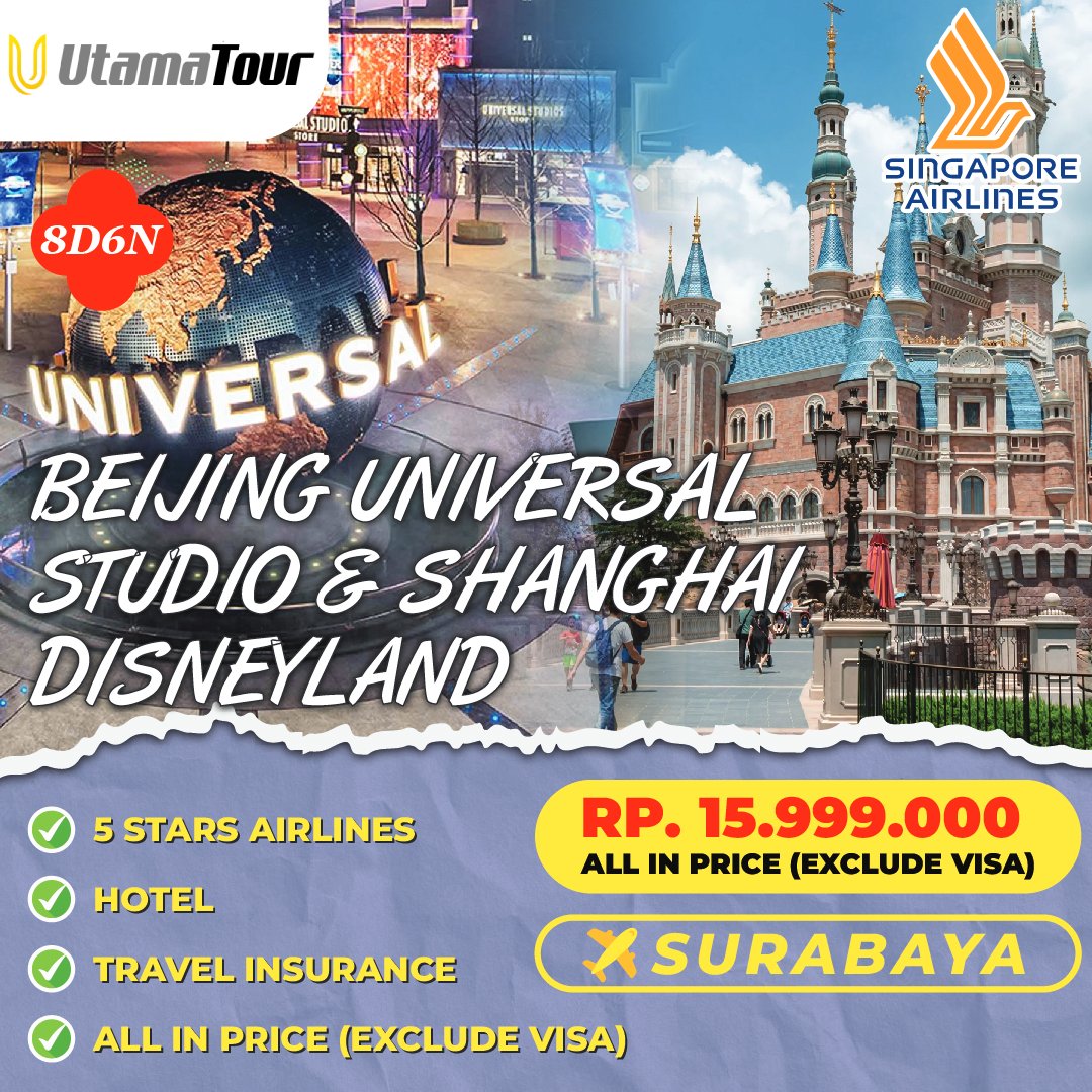 Beijing Universal Studio & Shanghai Disneyland 8D Start Surabaya Oktober 2024